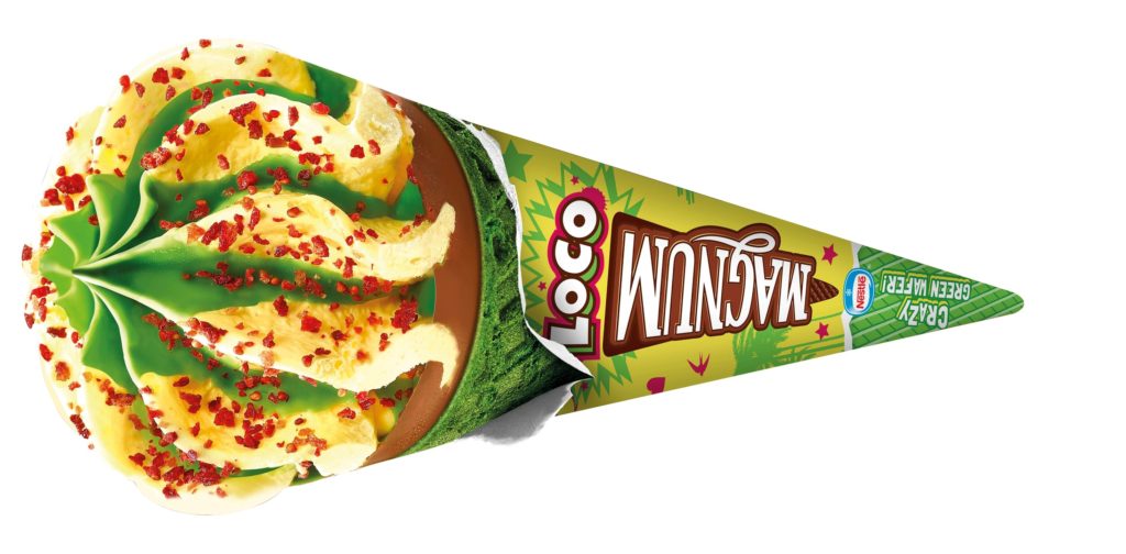 Από την ίδια εταιρεία κυκλοφορεί φέτος και το νέο παγωτό Magnum σε νέα χρωματιστή Loco γεύση: Δροσερό παγωτό λεμόνι με γρανίτα φράουλα σε πράσινο χωνάκι με λαχταριστά κομματάκια αποξηραμένης φράουλας.