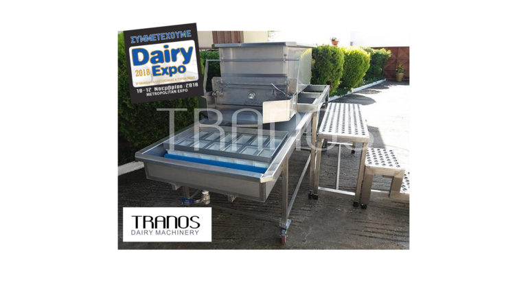 H TRANOS DAIRY MACHINERY είναι στην ευχάριστη θέση να παρουσιάσει μέσω της έκθεσης Dairy Expo 2018 στους επισκέπτες μηχανήματα παραγωγής τυροκομικών προϊόντων όπως βραστήρες γάλακτος,τυρολέβητες,ψύκτες ,τυροτράπεζες,φίλτρα-κορυφολόγους γάλακτος.