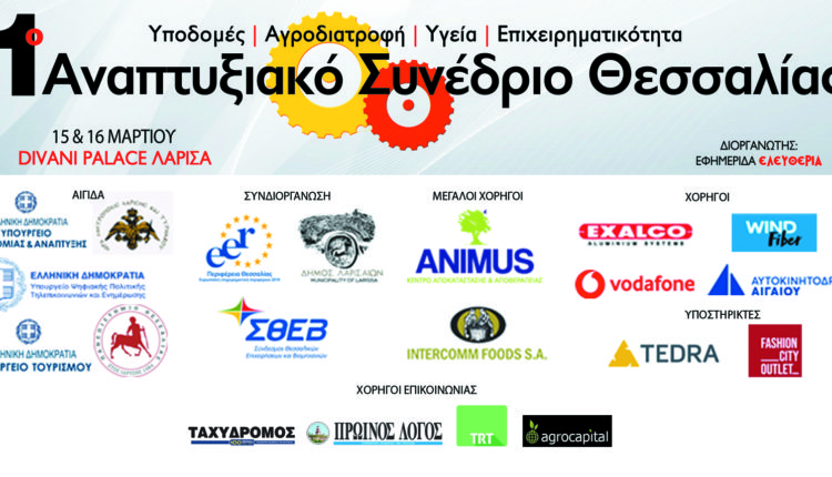 Εστιάζοντας στην αναπτυξιακή δυναμική και αξιοποίηση των τεράστιων δυνατοτήτων και προοπτικών της Περιφέρειας Θεσσαλίας, η εφημερίδα «Ελευθερία» διοργανώνει στη Λάρισα το 1ο Αναπτυξιακό Συνέδριο Θεσσαλίας στις 15 & 16 Μαρτίου 2019, στο ξενοδοχείο «Διβάνη».