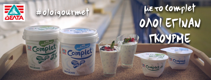 Με μία ξεχωριστή, χιουμοριστική και ανατρεπτική επικοινωνία και κεντρικό μήνυμα «Τώρα με το Complet, όλοι έγιναν γκουρμέ», η ΔΕΛΤΑ πρωτοπορεί με δύο νέα τηλεοπτικά spot για τη σειρά λευκού γιαουρτιού Complet.