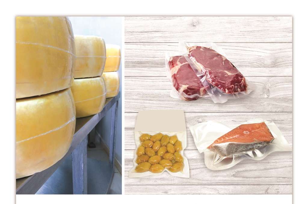 Ως προς την ειδική κατηγορία σακουλών κενού – συρρίκνωσης, οι οποίες, μετά τη διαδικασία άντλησης του αέρα, μπορούν να συρρικνωθούν σε θερμαινόμενη δεξαμενή νερού, διατίθενται σακούλες χαμηλής φραγής αερίων για τυριά που ακόμα ωριμάζουν, με ευθεία ή καμπύλη κάτω κόλληση (‘χαμόγελο’), καθώς επίσης και σακούλες υψηλής φραγής αερίων για ώριμα τυριά, πάντα με καμπύλη ή ευθεία κάτω κόλληση αναλόγως σχήματος προϊόντος.