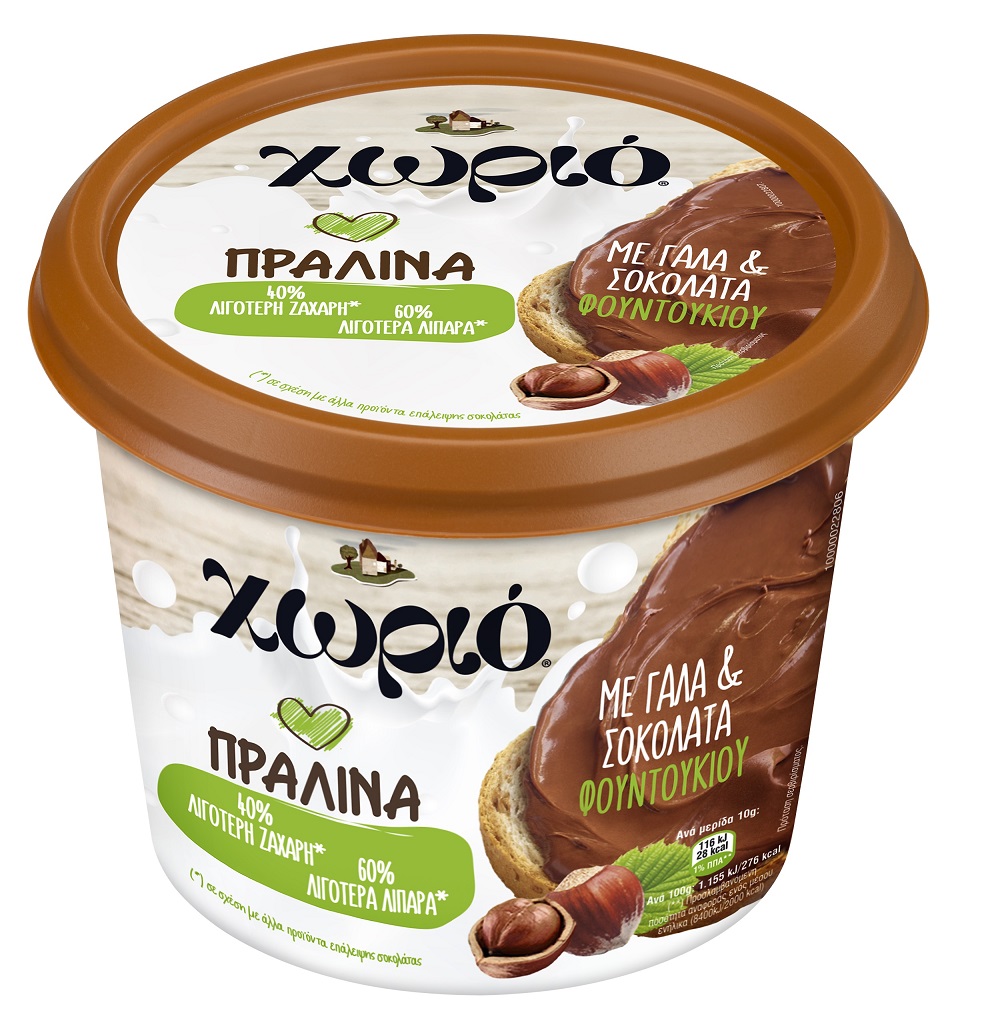Η Πραλίνα Χωριό είναι ένα φρέσκο προϊόν επάλειψης, αφού φτιάχνεται από 47% γάλα και αυθεντική βελγική σοκολάτα φουντουκιού που του δίνει πλούσια γεύση φρέσκιας πραλίνας. Η καινοτομία του έγκειται στη σύνθεσή του, με 40% λιγότερη ζάχαρη και 60% λιγότερα λιπαρά, ενώ είναι πλούσιο σε φυτικές ίνες και δεν περιέχει φοινικέλαιο. Σύμφωνα με το σχετικό δελτίο Τύπου: “Είναι το μοναδικό προϊόν στην αγορά που συνδυάζει χαμηλά λιπαρά και υψηλή διατροφική αξία και επομένως είναι κατάλληλο για παιδιά αλλά και για ανθρώπους που ακολουθούν διατροφή χαμηλή σε θερμίδες και λιπαρά. Η Πραλίνα Χωριό διατηρείται στο ψυγείο, αλείφεται εύκολα και είναι ιδανική για απολαυστικό πρωινό και για σνακ“.