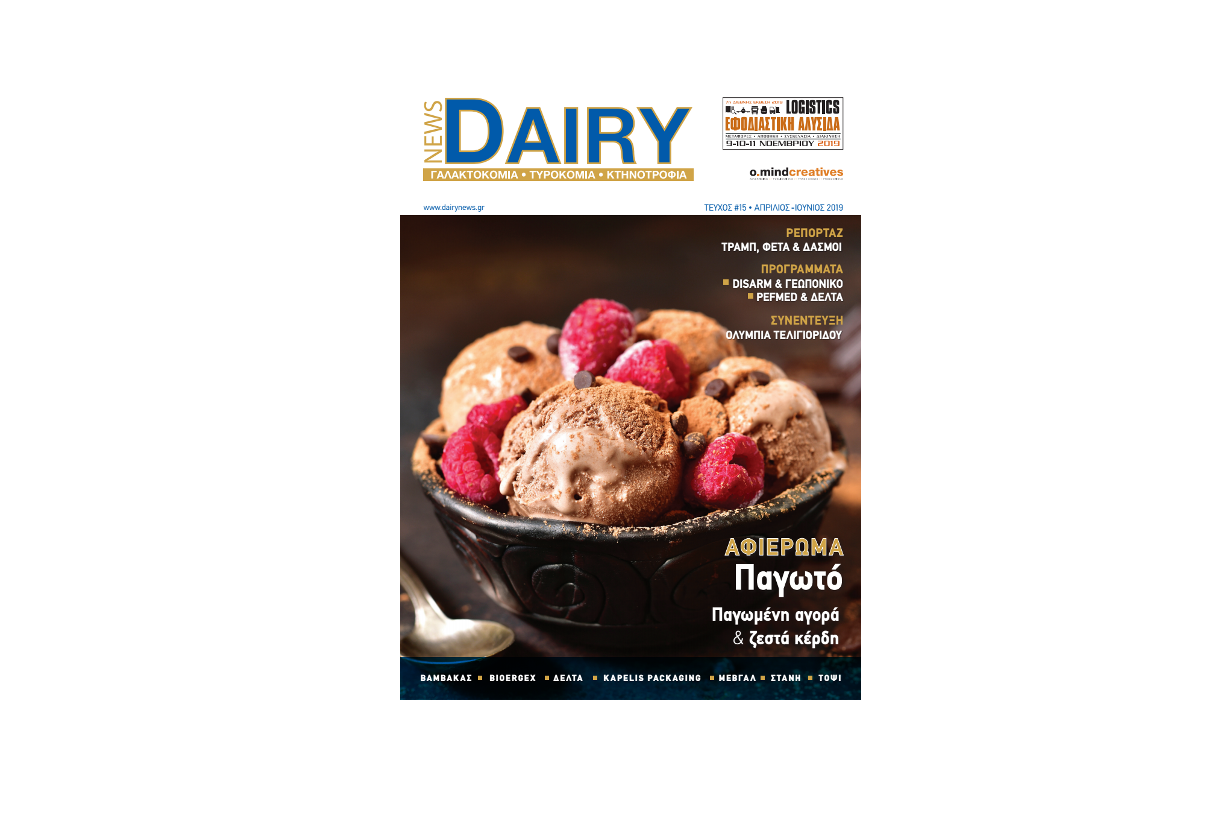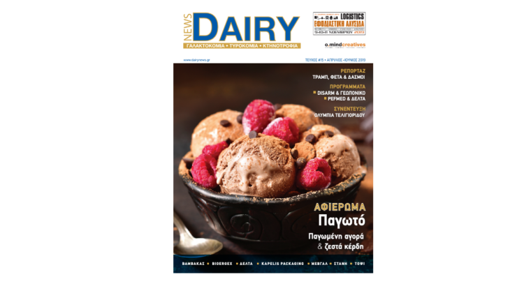 Κυκλοφόρησε το 15ο τεύχος του κλαδικού περιοδικού Dairy News, το δεύτερο για το 2019. Στην ύλη του τεύχους περιλαμβάνονται, εκτός από το αφιέρωμα στην ελληνική αγορά παγωτού, συνεντεύξεις με σημαντικούς Έλληνες τυροκόμους καθώς και επιστημονικά άρθρα για την ελληνική γαλακτοκομία. Η κεντρική συνέντευξη του τεύχους ανήκει στην Ολυμπία Τελιγιορίδου, υφυπουργό Αγροτικής Ανάπτυξης & Τροφίμων.