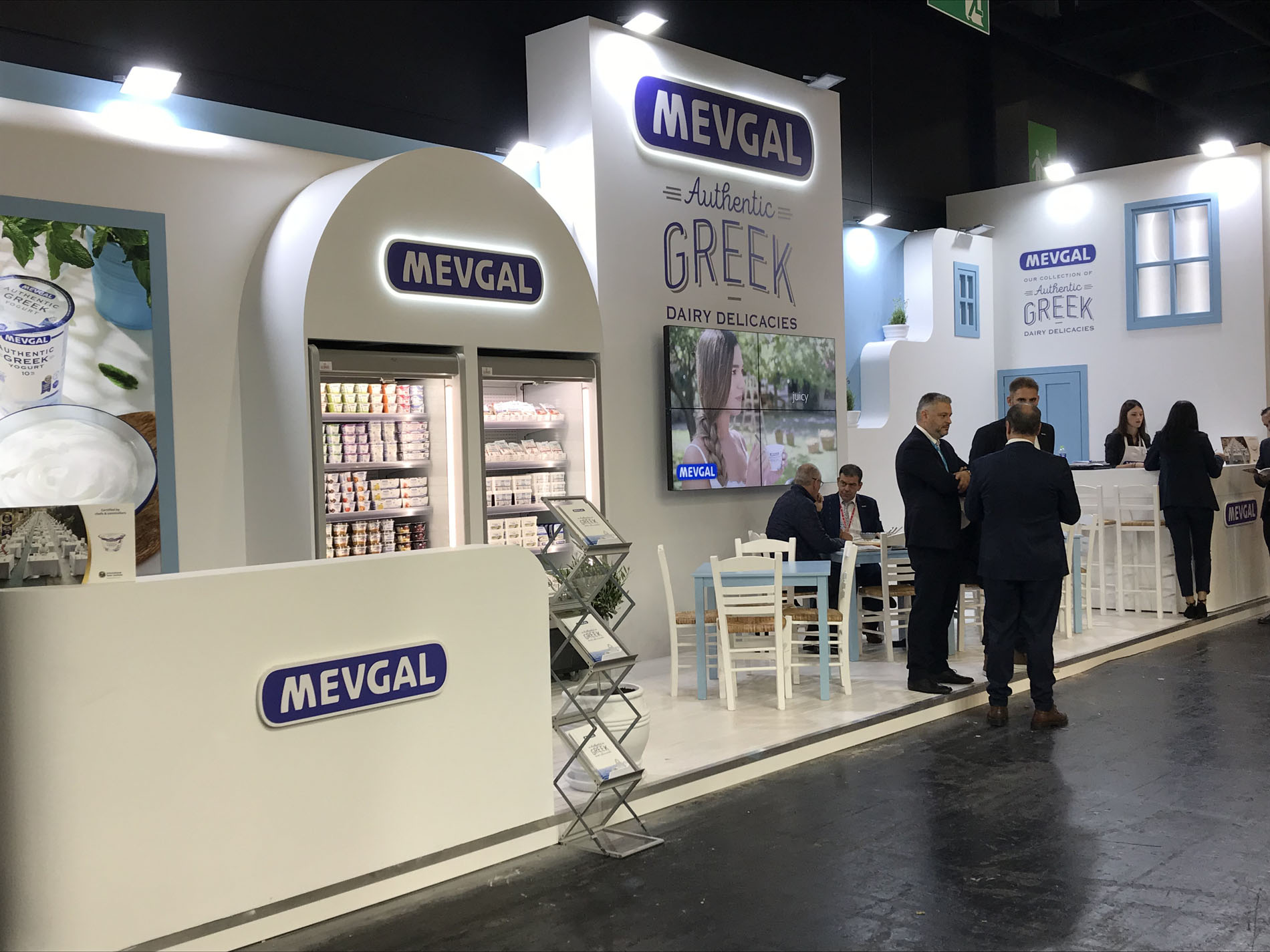 Σε ένα περίπτερο που απέπνεε Ελλάδα -από άποψη σχεδιασμού αλλά κυρίως γεύσεων- η ΜΕΒΓΑΛ παρουσίασε τις νέες συσκευασίες γιαουρτιών και τυροκομικών, που σχεδιάστηκαν ειδικά για τις αγορές του εξωτερικού και είναι εμπνευσμένες από ελληνικά τοπία.