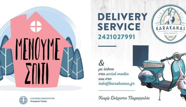 Τα δύο καταστήματα (Πολυμέρη 15 και Γ. Δήμου 41) στον Βόλο όπως και το τυροκομείο έχουν ενεργοποιήσει την υπηρεσία παράδοσης στο σπίτι χωρίς ελάχιστη παραγγελία και κατόπιν συνεννόησης σε ώρες καταστημάτων με κοινό αριθμό τηλεφωνικών παραγγελιών.