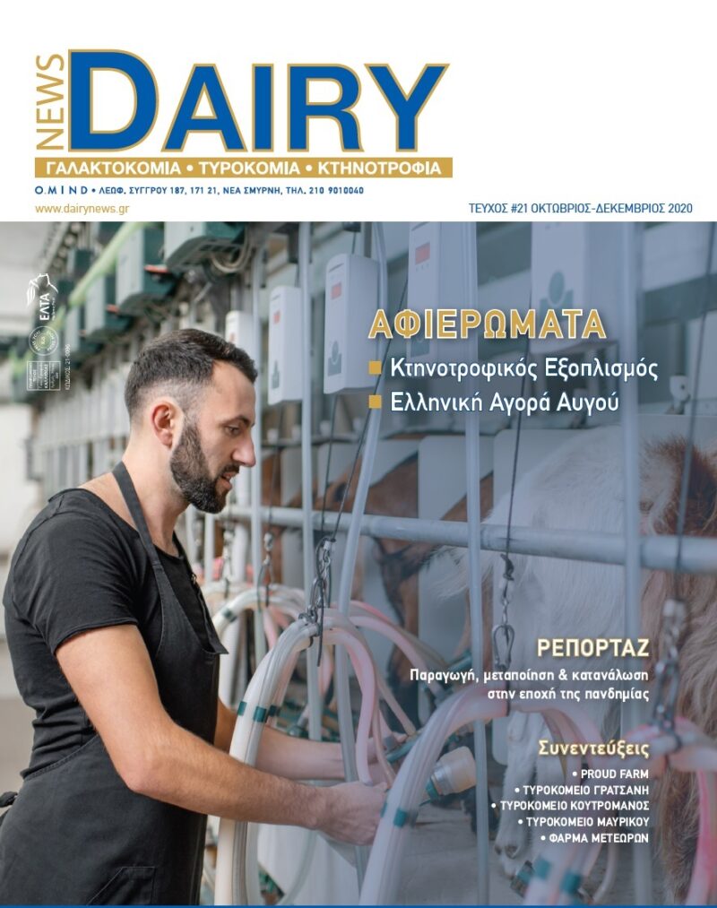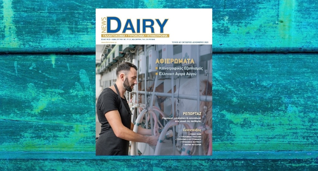 Με δύο αφιερώματα στον ‘Μηχανολογικό εξοπλισμό κτηνοτροφικών μονάδων’ και την ‘Ελληνική αγορά αυγού’, καθώς και με πλούσιο ρεπορτάζ για τον γαλακτοκομικό & τυροκομικό κλάδο και συνεντεύξεις παραγωγών απ΄ όλη την Ελλάδα κυκλοφόρησε το 21ο τεύχος του κλαδικού- συνδρομητικού περιοδικού Dairy News. Αυτό είναι το τελευταίο τριμηνιαίο τεύχος του περιοδικού καθώς από το 2021 το Dairy News θα κυκλοφορεί κάθε δύο μήνες, δηλαδή έξι τεύχη το χρόνο.