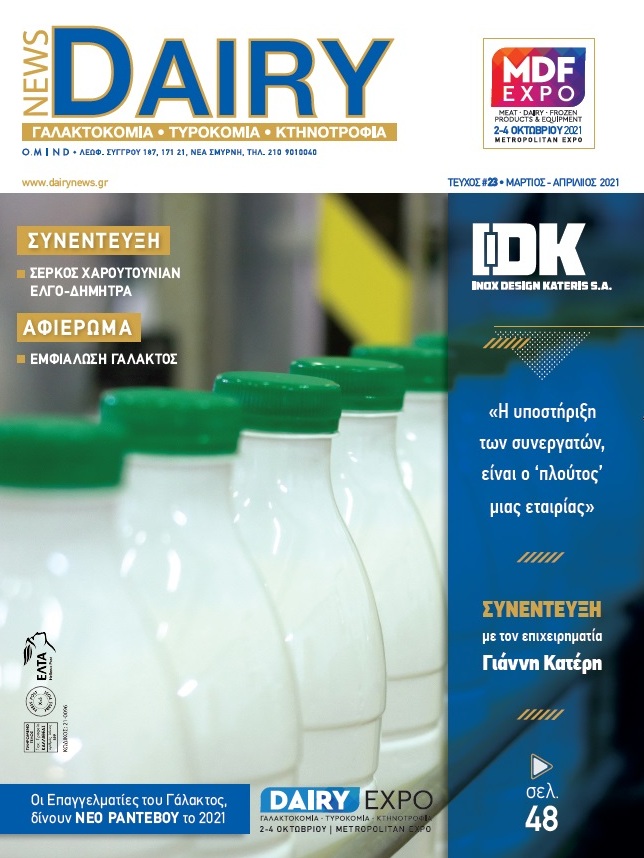 Κυκλοφόρησε το 23ο τεύχος του κλαδικού περιοδικού Dairy News (Μάρτιος- Απρίλιος 2021) με κεντρικό αφιέρωμα στις εταιρείες και τα μηχανήματα που αφορούν στην εμφιάλωση του γάλακτος.