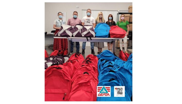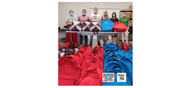 Η ΔΕΛΤΑ και οι εργαζόμενοί της προσέφεραν 120 σχολικές τσάντες γεμάτες με κασετίνες, τετράδια και γραφική ύλη. Η προσφορά έγινε μέσω της Ένωσης «Μαζί για το Παιδί» τη Δευτέρα 13 Σεπτεμβρίου, με σκοπό να μοιραστούν οι τσάντες άμεσα στα παιδιά που στηρίζουν οι φορείς «Φίλοι του Παιδιού» και «Εθελοντές του Κόσμου».