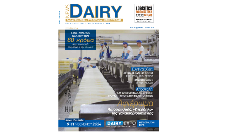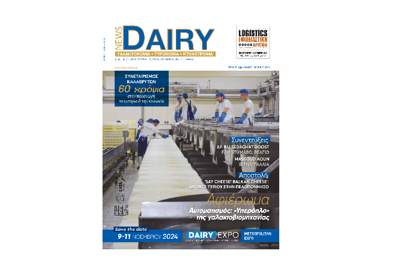 Κυκλοφόρησε το 36ο τεύχος του κλαδικού περιοδικού Dairy News αφιερωμένο στην πρωτογενή παραγωγή, την έρευνα και την τεχνολογία στον τομέα της κτηνοτροφίας και της γαλακτοκομίας. Το παρόν τεύχος περιλαμβάνει αφιέρωμα σχετικά με τους αυτοματισμούς στην παραγωγή γαλακτοκομικών και τυροκομικών προϊόντων, αλλά και case studies από την Ελλάδα και το εξωτερικό.