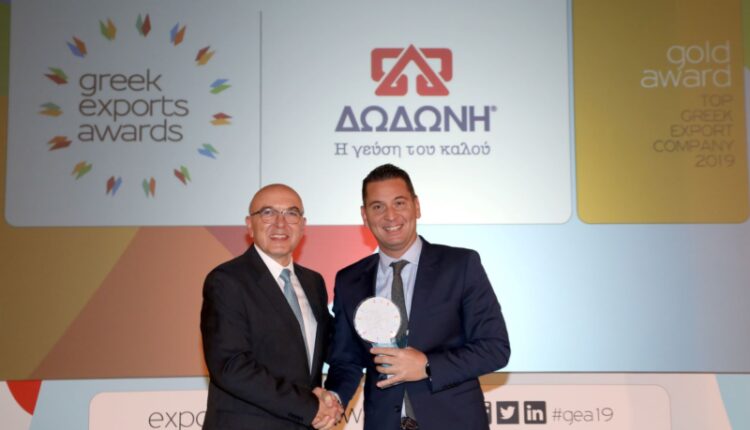 Κεντρική φωτογραφία: Αριστερά, ο Κωνσταντίνος Φραγκογιάννης, Υφυπουργός Εξωτερικών, αρμόδιος για την οικονομική Διπλωματία και την Εξωστρέφεια, παραδίδει το βραβείο στον Βασίλη Βροχίδη, Διευθυντή Εξαγωγών της Δωδώνη, το 2019