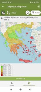 - Ο χάρτης δουλεύει σε επίπεδα -αρχικά δείχνει τις τιμές ανά Περιφέρεια. Εάν ο χρήστης επιλέξει (με άγγιγμα) μια περιοχή, η εφαρμογή κάνει εμβάθυνση και δείχνει την ανάλυση ανά Περιφερειακή Ενότητα