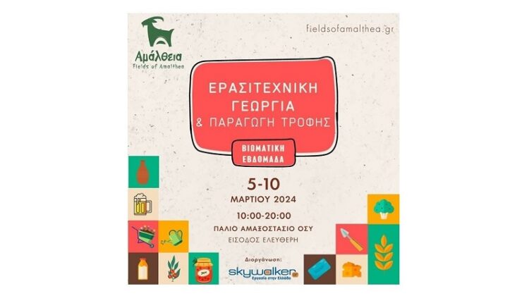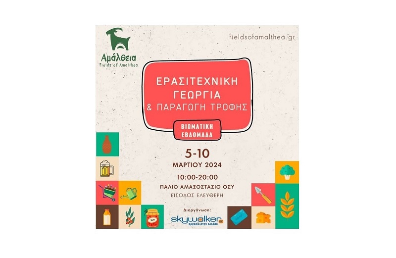 Από την Τρίτη 5 Μαρ 2024, έως την Κυριακή 10 Μαρ 2024, 10.00-20.00, οργανώνεται το Φεστιβάλ «ΑΜΑΛΘΕΙΑ» στον χώρο του πρώην αμαξοστασίου του ΟΣΥ (οδός Πειραιώς, έναντι ΤΕΧΝΟΠΟΛΙΣ, Γκάζι, Αθήνα) από τον όμιλο Skywalker-Εργασία στην Ελλάδα, για να ενισχυθεί η «Ερασιτεχνική γεωργία και η Παραγωγή τροφής».