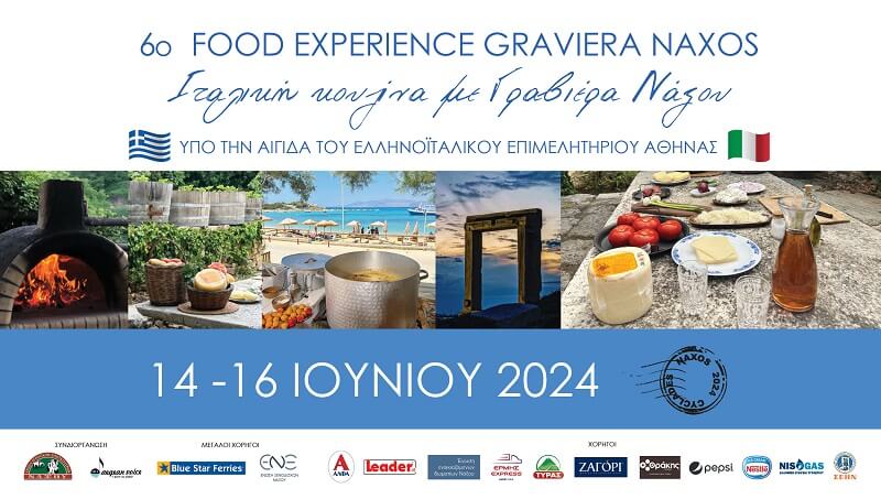 Το 6ο Food Experience Graviera Naxos διοργανώνεται το τριήμερο 14-16 Ιουνίου και τελεί υπό την αιγίδα του Ελληνο-Ιταλικού Επιμελητηρίου.