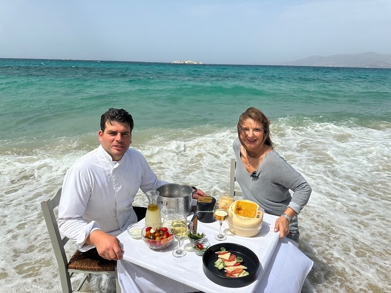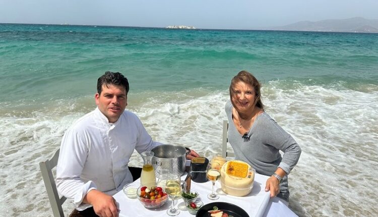 Επίσης, η πρώην Υπουργός Αγροτικής Ανάπτυξης και Τροφίμων, Κατερίνα Μπατζελή, μαγείρεψε πάνω στο κύμα στην παραλία της Πλάκας, μπρουσκέτες με ντομάτα, σκόρδο, γαύρο και, φυσικά, Γραβιέρα Νάξου!
