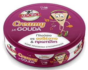 Τα νέα Adoro Creamy Τριγωνάκια με Gouda κυκλοφορούν σε μια ευφάνταστη συσκευασία με έναν super τυρένιο ήρωα και είναι τόσο πλούσια σε ασβέστιο και πρωτεΐνη που θα γίνουν τα αγαπημένα όλων – μικρών και μεγάλων. Ξεχωρίζουν για την ιδιαίτερα κρεμώδη υφή τους και την αγαπημένη γεύση της Gouda, ενώ παράλληλα δεν περιέχουν συντηρητικά. Ένα υγιεινό σνακ για όλη την οικογένεια, που χάρη στην πλούσια και απολαυστική σύνθεσή του, μπορεί να καταναλωθεί και σκέτο αλλά και να χαρίσει στη στιγμή μια έξτρα γευστική πινελιά σε φρυγανιές, παξιμάδια, τορτίγιες, σάντουιτς, τυροπιτάκια και άλλες αλμυρές συνταγές.