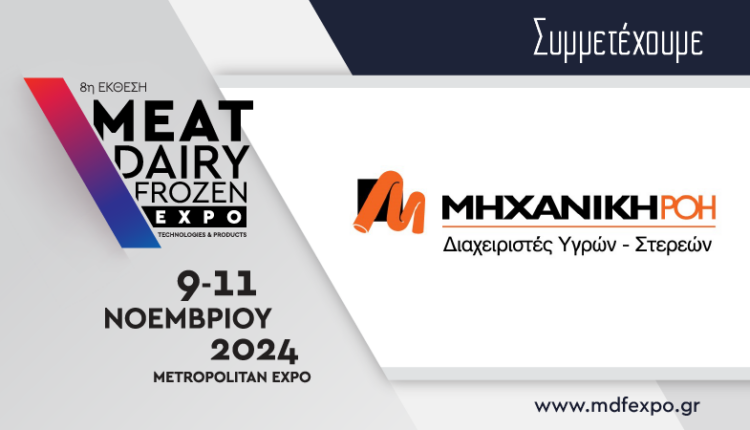 Η Μηχανική Ροή συμμετέχει στην MEAT / DAIRY / FROZEN EXPO 2024, από τις 9-11 Νοεμβρίου 2024 στο Metropolitan Expo.