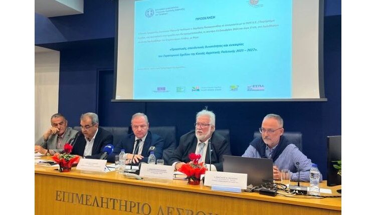 Στις 21 Οκτωβρίου 2024 πραγματοποιήθηκε στο Επιμελητήριο Λέσβου ενημερωτική εκδήλωση με θέμα «Προοπτικές, επενδυτικές δυνατότητες και ευκαιρίες του Στρατηγικού Σχεδίου της ΚΑΠ 2023-2027», παρουσία του Υφυπουργού Αγροτικής Ανάπτυξης και Τροφίμων, κ. Διονύση Σταμενίτη.