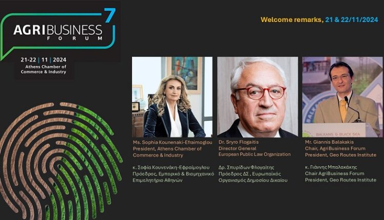 Το 7ο διεθνές AgriBusiness Forum, με θέμα «Quo Vadis Greek & European agriculture» στην ψηφιακή εποχή, λαμβάνει χώρα στις 21-22 Νοεμβρίου 2024, στο Εμπορικό & Βιομηχανικό Επιμελητήριο Αθηνών, με σημαντικό αριθμό εκπροσώπων από επιχειρήσεις, παραγωγούς, διπλωμάτες, ακαδημαϊκούς, και υπεύθυνους χάραξης πολιτικής.