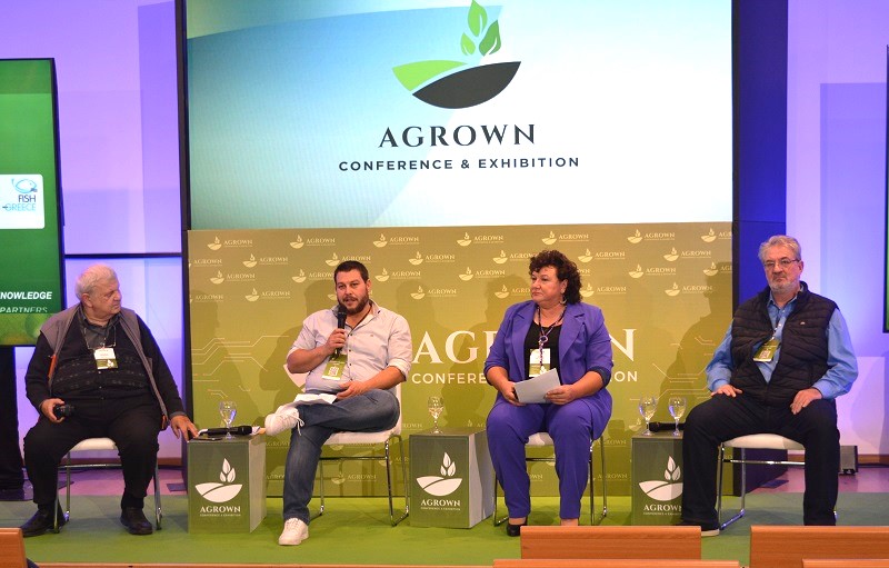 Το ‘κτηνοτροφικό’ πάνελ στο Agrown 2025, στο Αγρίνιο. Από αριστερά: Δημήτριος Μιχαηλίδης (δημοσιογράφος, συγγραφέας, ΑγροΝέα, AgroBus), Θωμάς Μόσχος, (τεχνικός σύμβουλος, Σύνδεσμος Ελληνικής Κτηνοτροφίας), Μάγδα Κοντογιάννη ( κτηνοτρόφος, γραμματέας, Κτηνοτροφικός Σύλλογος Περιφέρειας Αττικής «Άγιος Γεώργιος») και Δημήτριος Ρουκάς (ζωοτέχνης, τ. γεωπόνος, υποψ. διδάκτορας, Πανεπιστήμιο Δυτ. Μακεδονίας)